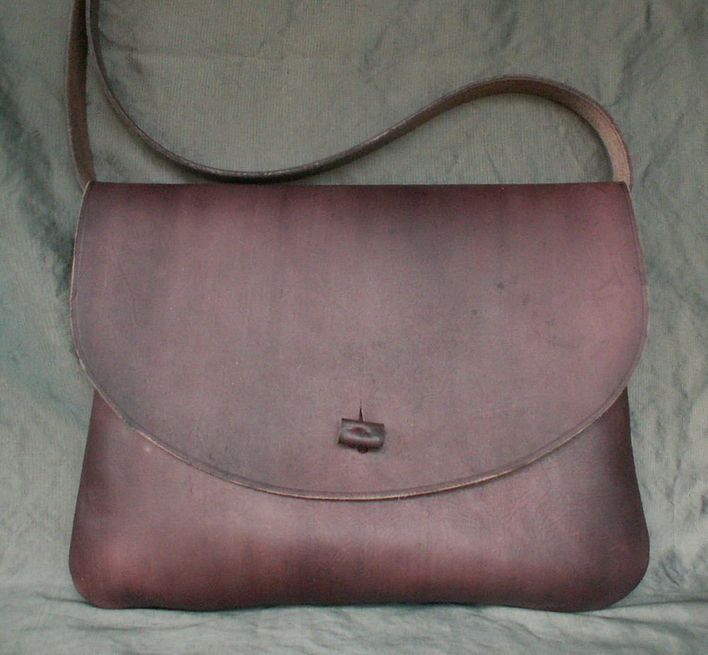 This shoulder bag is made from brown calf skin and is stitched by hand. The design for this bag comes from a number of illustrations and is a typical style of shoulder bag between the 14th and 17th centuries.