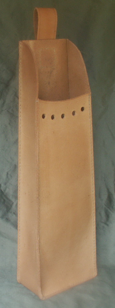 This crossbow quarrel box is made from tan calf skin and is stitched by hand. The design is is based on a surviving example in the Swiss National Museum in Zürich. It will hold a dozen crossbow bolts and is suitable for quarrels that are between 12 and 15 inches long (30-38cm).