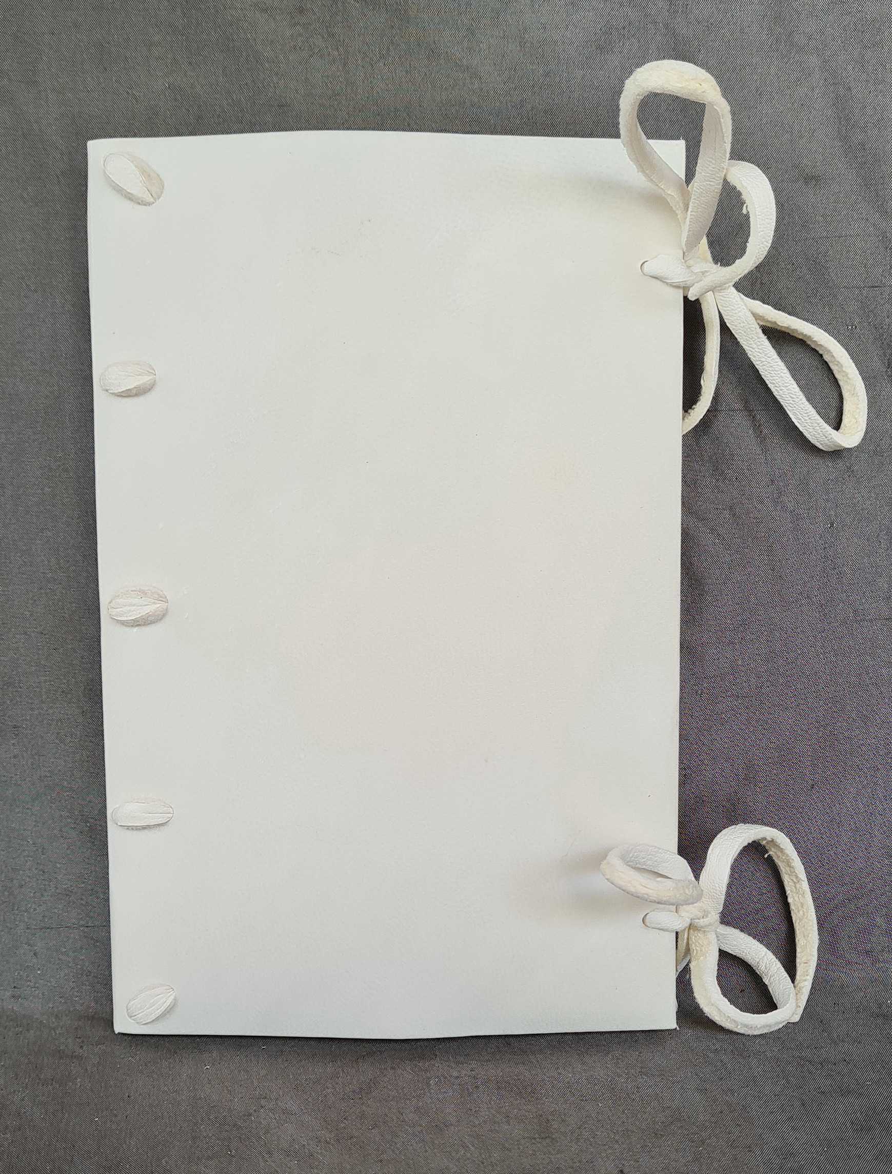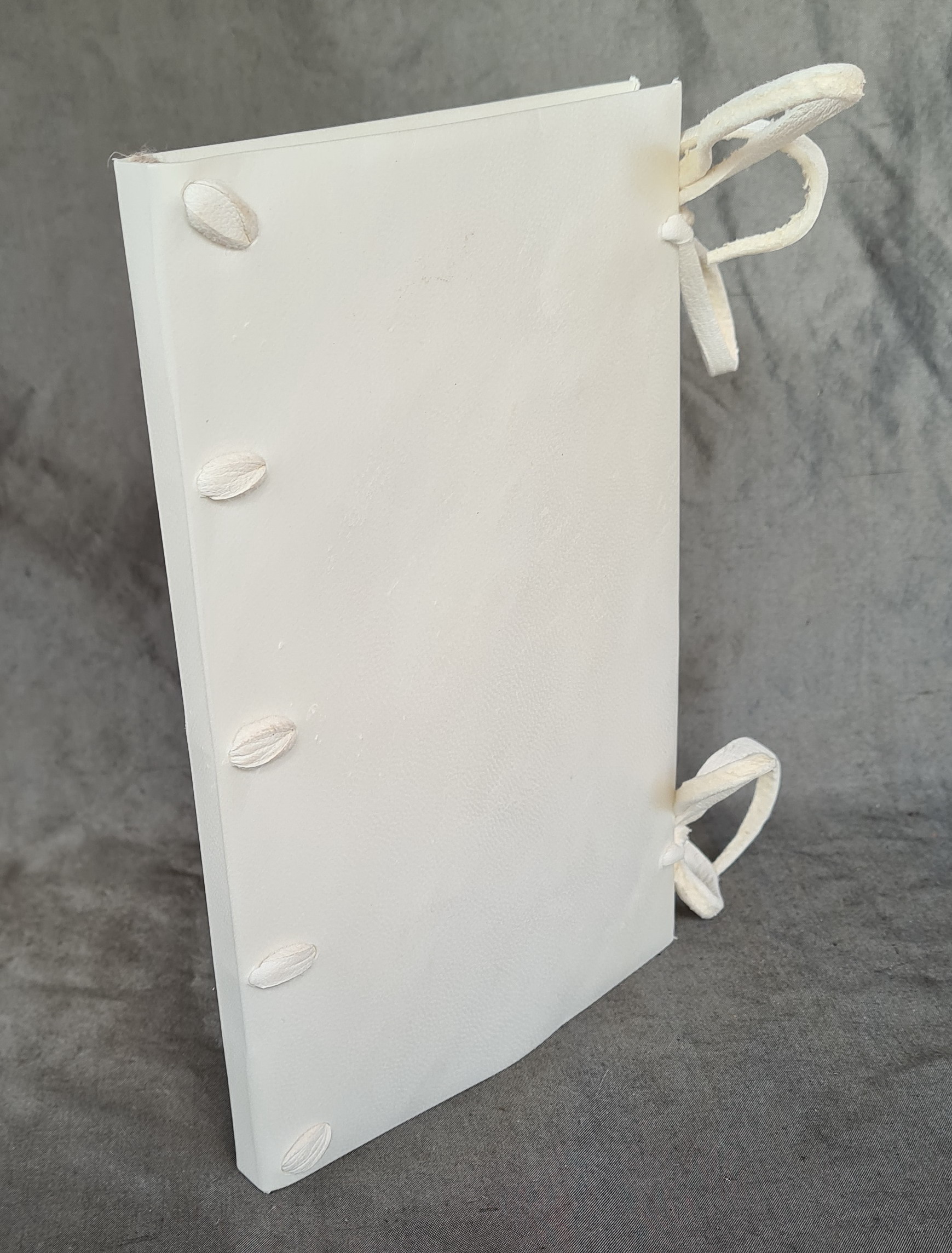 This facsimile book is in a limp vellum binding and is made by hand in the same way as they where in the 16th and 17th centuries. It has natural linen headbands that reinforce the top and bottom of the spine. The paper is a high quality laid paper that has no water marks and there are 112 pages.