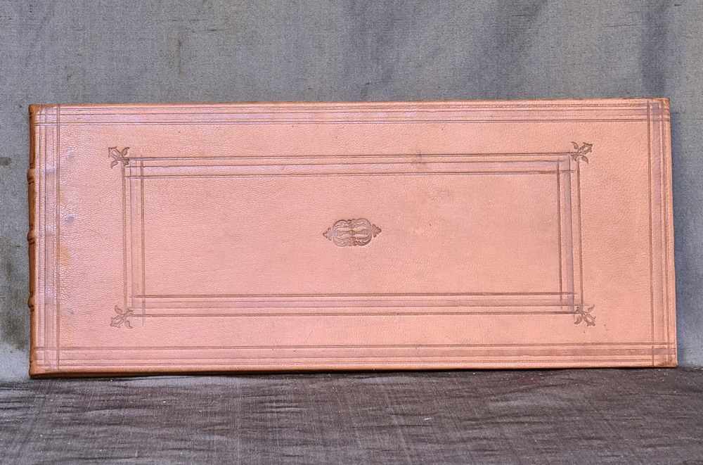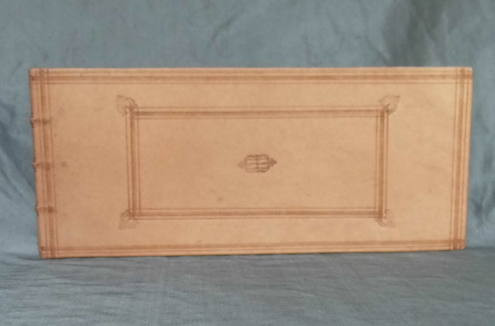 This facsimile book is covered with tan goat skin leather and is made by hand in the same way as they where in the 16th and 17th centuries. It has black and yellow headbands that reinforce the top and bottom of the spine. The paper is a high quality laid paper that has no water marks and there are 72 pages. The covers and spine are decorated with a blind tooling design copied from surviving examples from the same period as this was originally printed