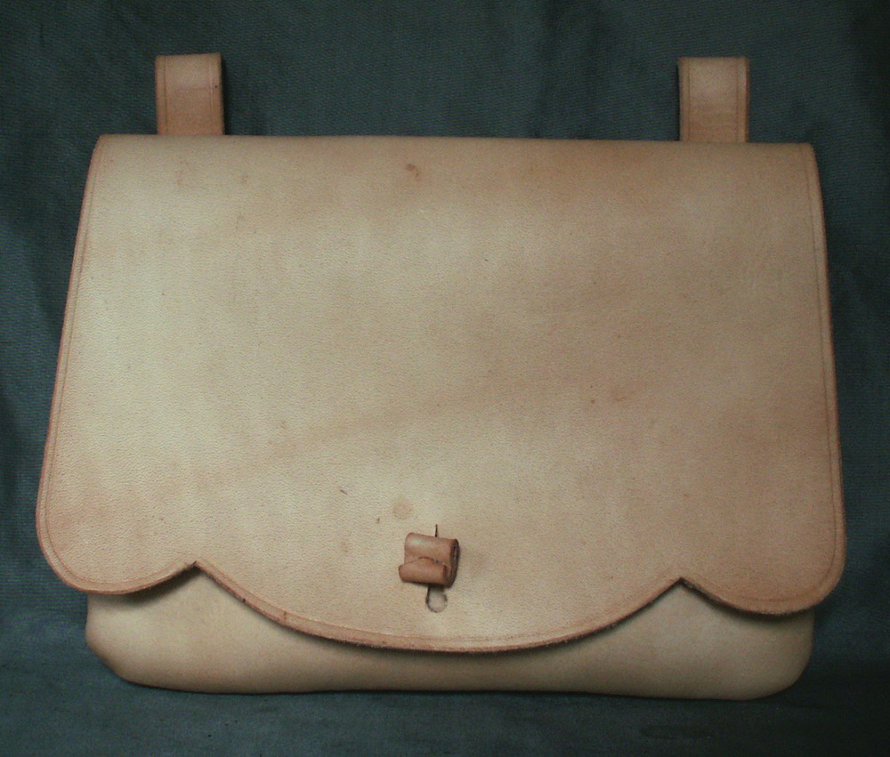 This belt wallet is made from tan calf skin and is stitched by hand. The design is based on a number of 16th and 17th century illustrations and is a common design in that period.