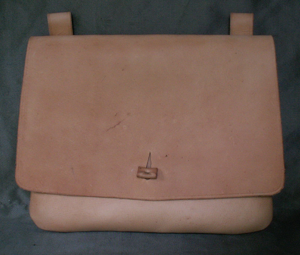 This belt wallet is made from tan calf skin and is stitched by hand. The design is based on a number of 16th and 17th century illustrations and is a common design in that period.
