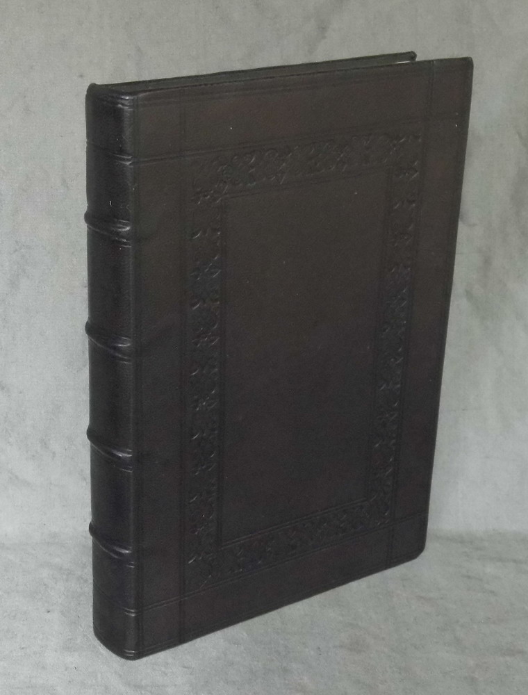 This facsimile book is covered with oak gall black goat skin leather and is made by hand in the same way as they where in the 16th and 17th centuries. It has black and yellow headbands that reinforce the top and bottom of the spine. The paper is a high quality laid paper that has no water marks and there are 255 pages. The covers and spine are decorated with a blind tooling design copied from surviving examples from the same period as this was originally printed